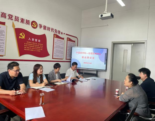 2025年5月14日,外国语学院召开毕业生工作促进会暨与佳蓓艺术中心携手共建学生就业见习实训基地洽谈会。