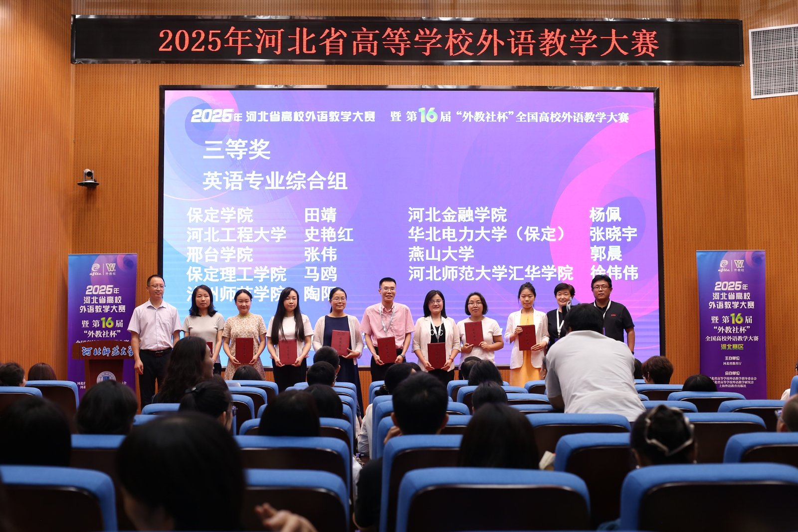 6月21日,由河北省教育厅主办,河北省高等学校外语教学指导委员会、河北省高等学校外语教学研究会及河北师范大学承办的 2025 年河北省高校外语教学大赛暨第十六届 “外教社杯” 全国高校外语教学大赛河北赛区决赛落下帷幕。我院教师张伟在英语专业综合课组比赛中凭借精湛的教学技艺与创新的教学设计,荣获决赛三等奖,为学院再添教学竞赛佳绩。