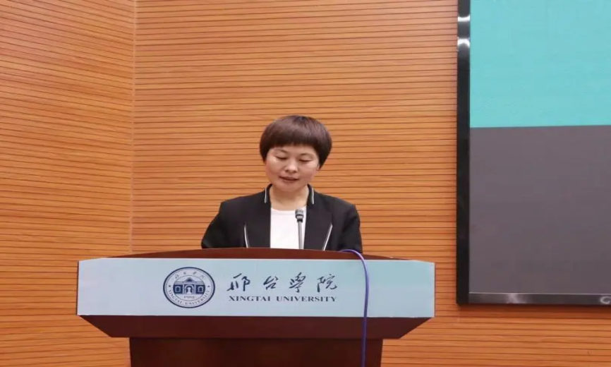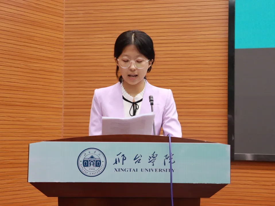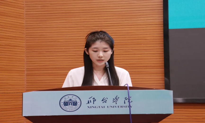 教师代表张少娟老师发言。张老师希望新生可以始终“与时代同行,与国家同在”,传承与发挥邢台学院的光荣传统与精神内核。