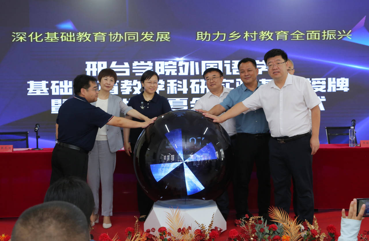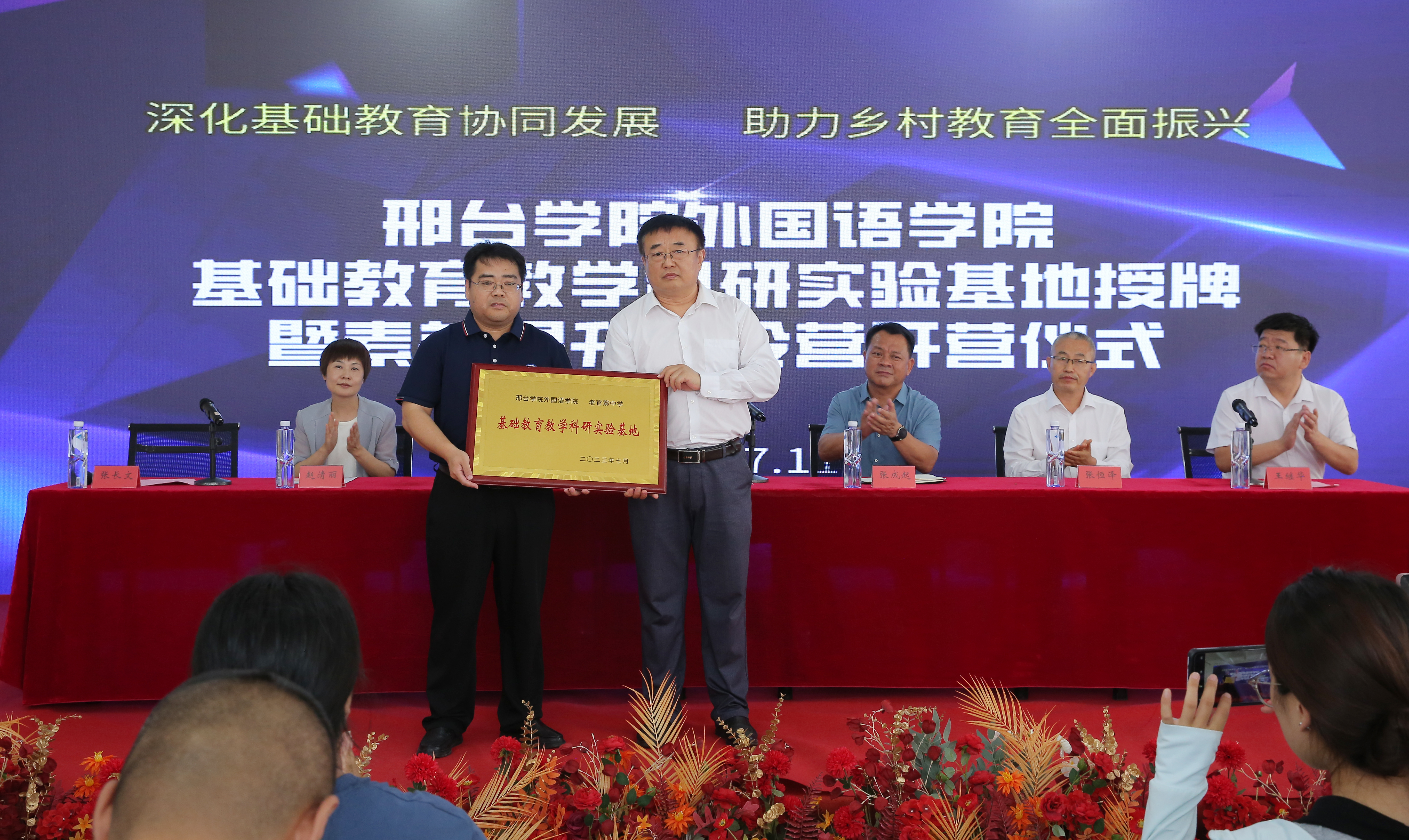 最后,雷宏谦主任和张长文校长共同为邢台学院外国语学院基础教育教学科研实验基地授牌。所有与会嘉宾共同点亮灯球,夏令营正式开营!