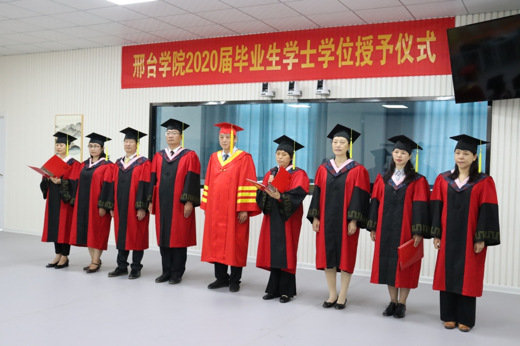 2020年6月21日上午,邢台学院外国语学院2020届本科毕业生学士学位授予仪式在教辅楼创新大课堂隆重举行。学校党委常委、副书记赵建彬教授,学院领导班子成员、教师代表和辅导员老师在现场参加了授予仪式。2020届全体本科毕业生和家长在各自家中,以视频方式参加了授予仪式。