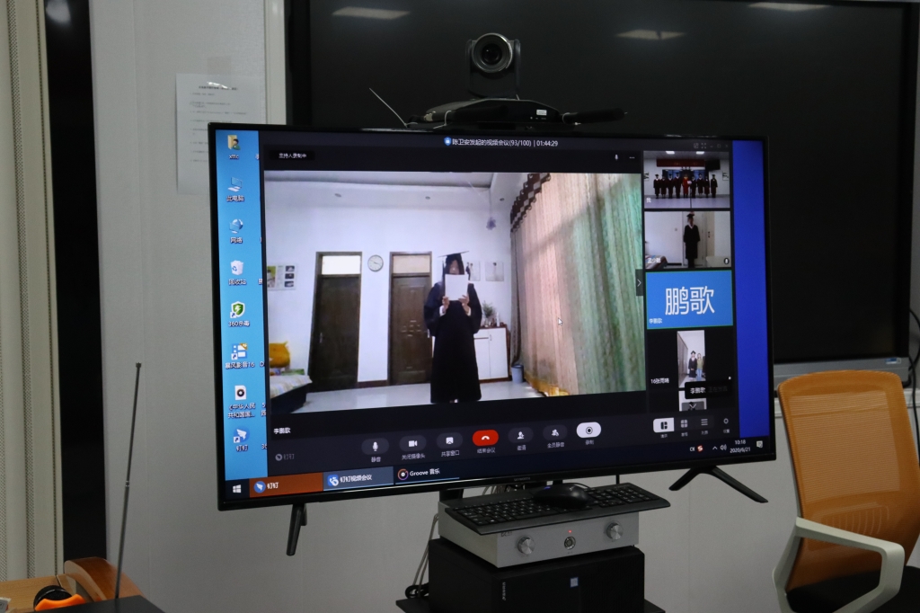 受新冠肺炎影响,学生们无法返校参加现场的仪式。为了不让毕业生们错过这场盛典,留下终生的遗憾,学院经研究决定,举办一场在线的学位授予仪式。全院各相关岗位人员为了办好这次“云典礼”,周密布置,认真谋划,克服了种种困难。学院提前把学位服快递到全国各地每一名学生的家里,辅导员老师多次模拟,指导每名同学的站位和服装,邀请家长一同出席学生人生中这荣耀的时刻,并为毕业生拨穗,见证和分享孩子的喜悦。
