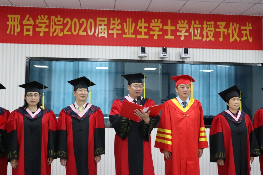 院学位评定分委员会主席,院长陈卫安副教授宣读《邢台学院2020年本科毕业生学士学位授予决定》