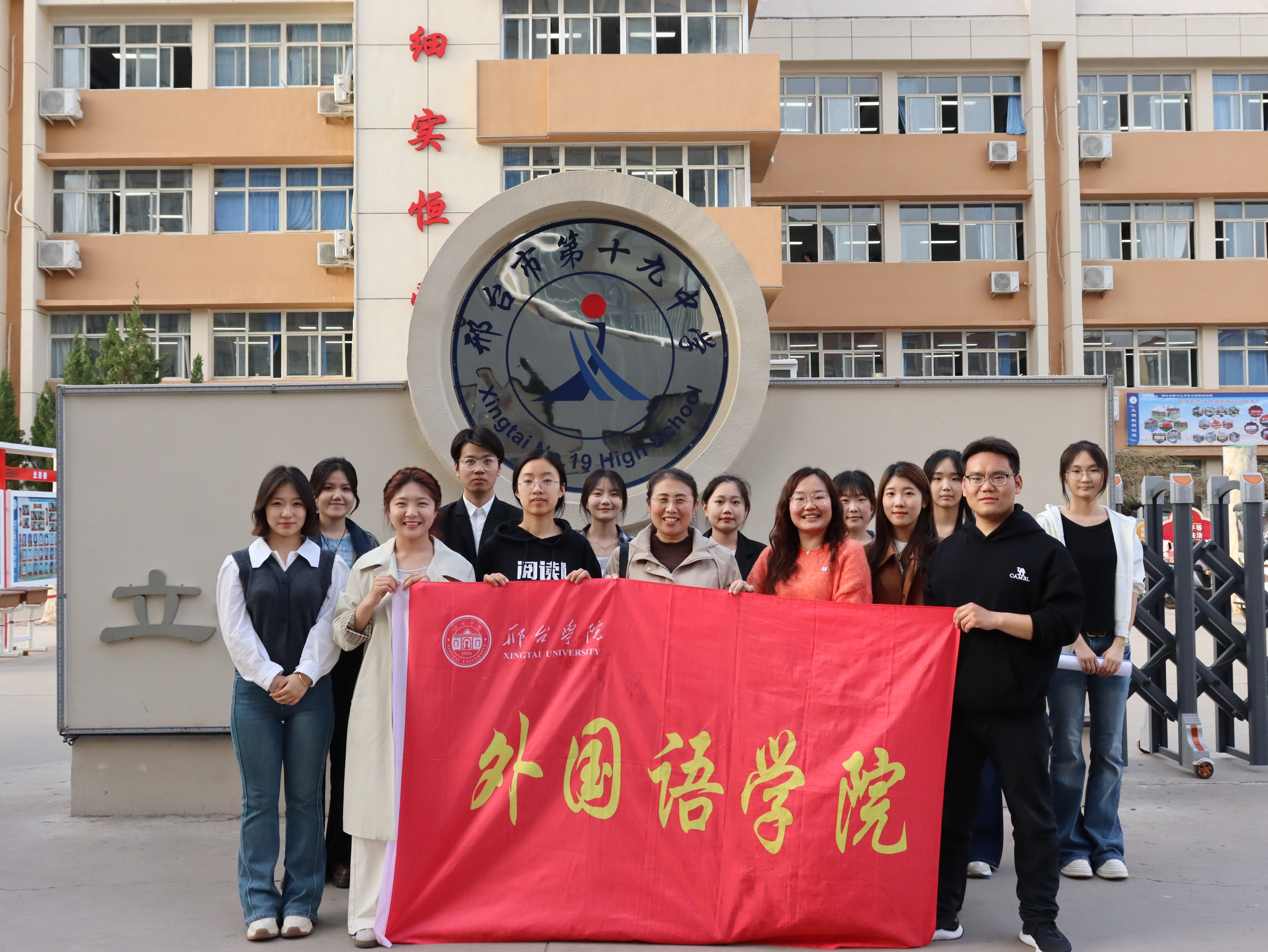 2025年3月24日,邢台学院外国语学院团委负责人陈闯、辅导员王岚、专业教师张旸三位指导老师带领10名外国语学院的优秀学生志愿者在邢台市第十九中学,开展了一场别开生面的双语宣讲志愿服务活动。