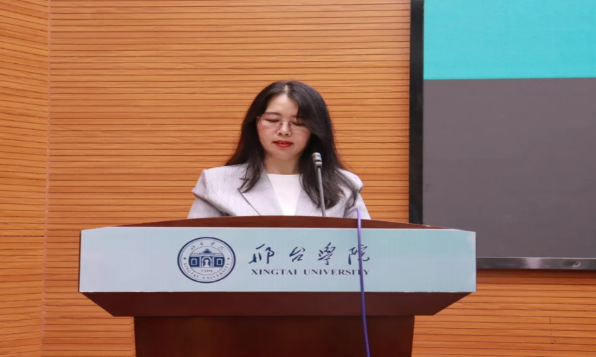 教师代表张少娟老师发言。张老师希望新生可以始终“与时代同行,与国家同在”,传承与发挥邢台学院的光荣传统与精神内核。