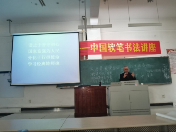 为弘扬国粹,提高同学们的审美素质,挖掘同学们的潜能,我院于2020年10月5日在公教楼405教室举办以“紫金书风——中国软笔书法”为主题的讲座。本次讲座有中国书法家协会会员,邢台市书法家协会副会长,邢台学院图书馆馆长,李印华教授进行讲授。外国语学院沈宪敏书记、李树学教授等多位老师及学生软笔书法爱好者参与讲座。